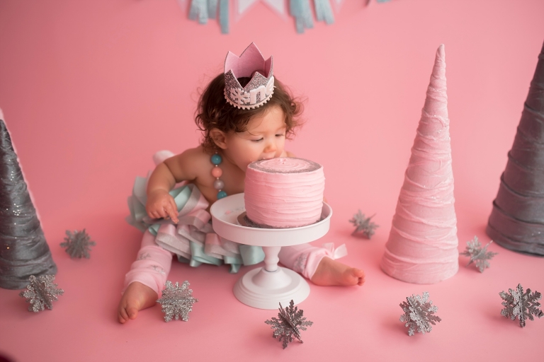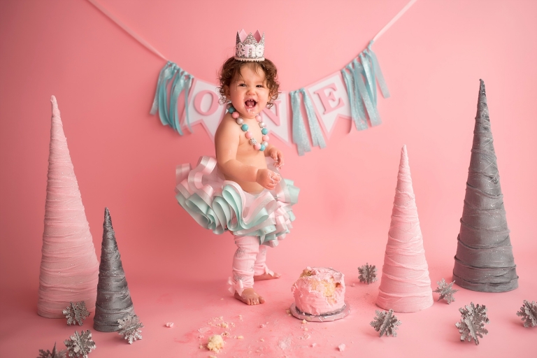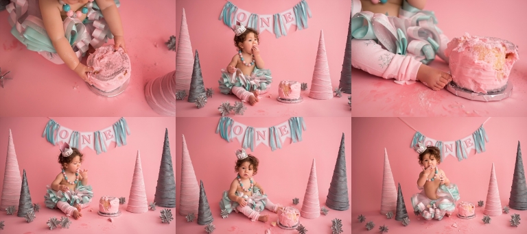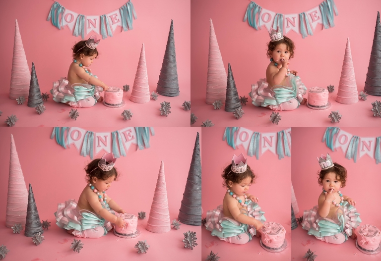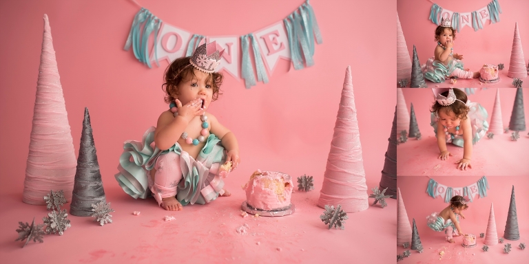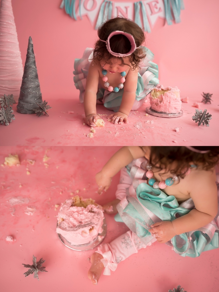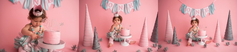 I just love the Winter ONEderland theme her mom chose for her cake smash, it was so fun!